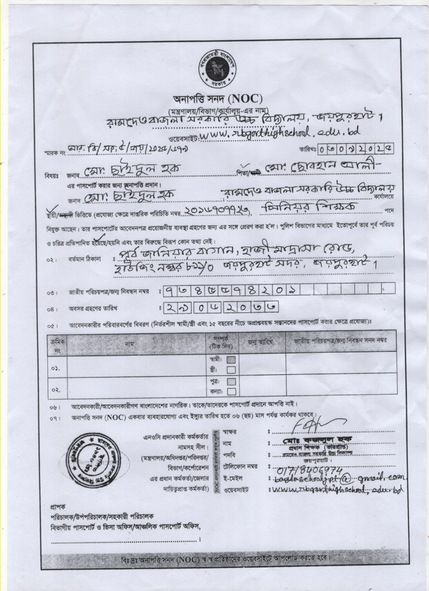 NOC for Md Saidul Hoque Sir